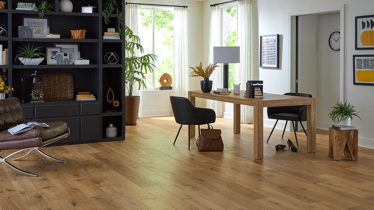TRUCOR® offers rigid vinyl flooring that mimics hardwood and stone, designed for active environments at an affordable price. With a 100% waterproof core, it’s built to perform in both residential and commercial settings.